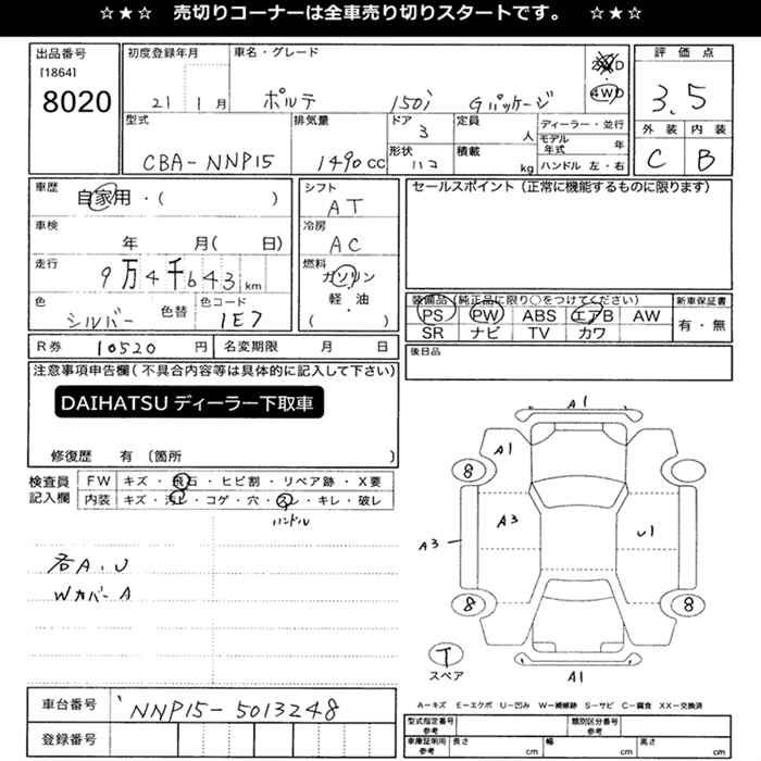 TOYOTA PORTE 4WD 150I G PACKAGE - лот 8020