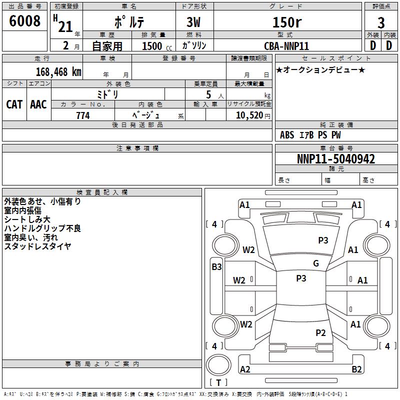 TOYOTA PORTE 150r - лот 6008