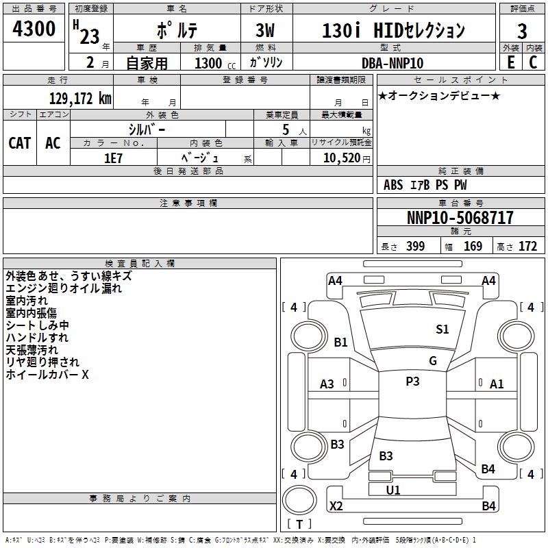 TOYOTA PORTE 130I HID SELECTION - лот 4300