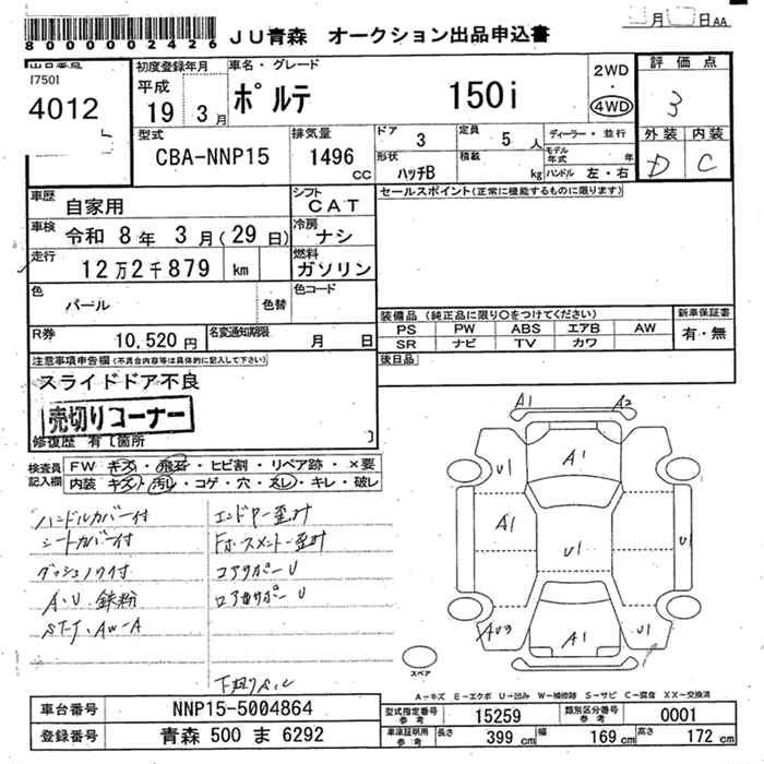 TOYOTA PORTE 4WD 150i - лот 4012