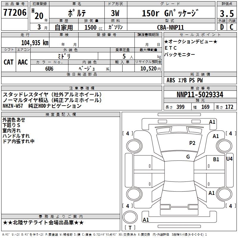 TOYOTA PORTE 150R G PACKAGE - лот 77206
