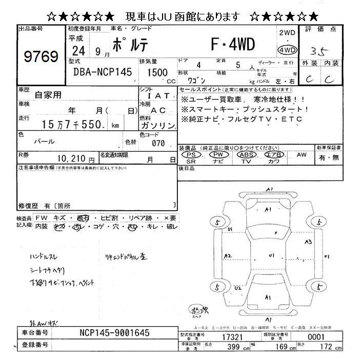 TOYOTA PORTE 4WD F - лот 9769
