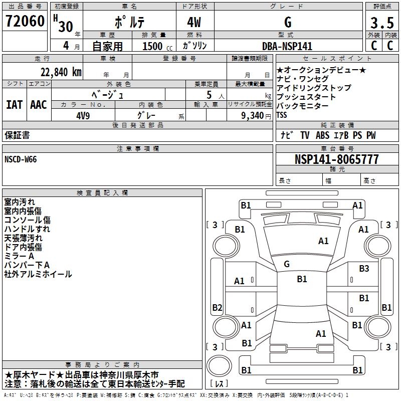 TOYOTA PORTE G - лот 72060