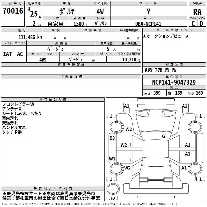 TOYOTA PORTE Y - лот 70016