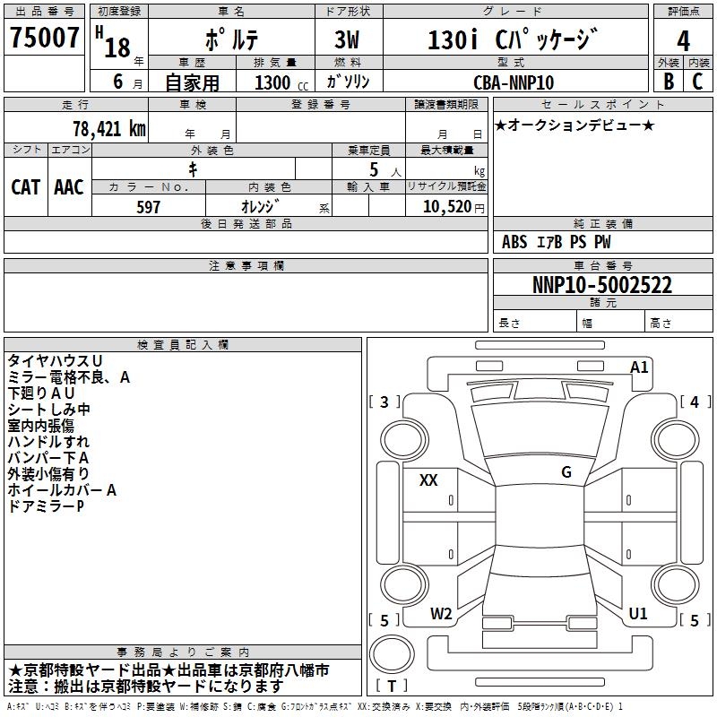 TOYOTA PORTE 130I C PACKAGE - лот 75007