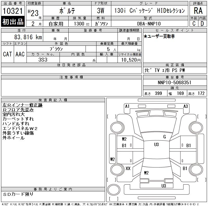 TOYOTA PORTE 130I C PACK HID SELECTION - лот 10321