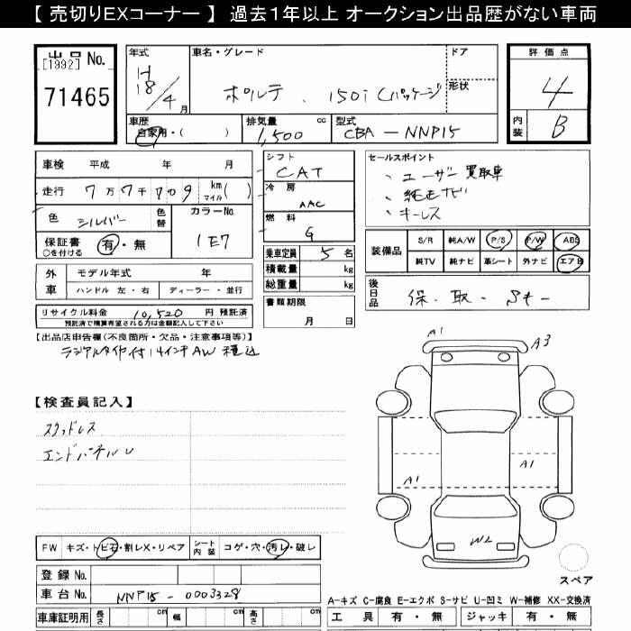 TOYOTA PORTE 150i C-PKG - лот 71465