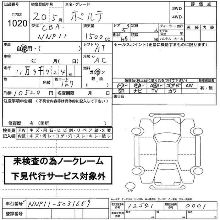 TOYOTA PORTE - лот 1020