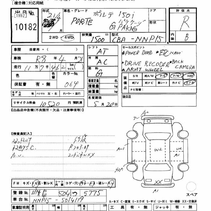 TOYOTA PORTE 4WD 150i G-PKG - лот 10182