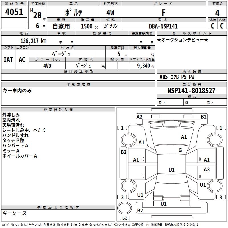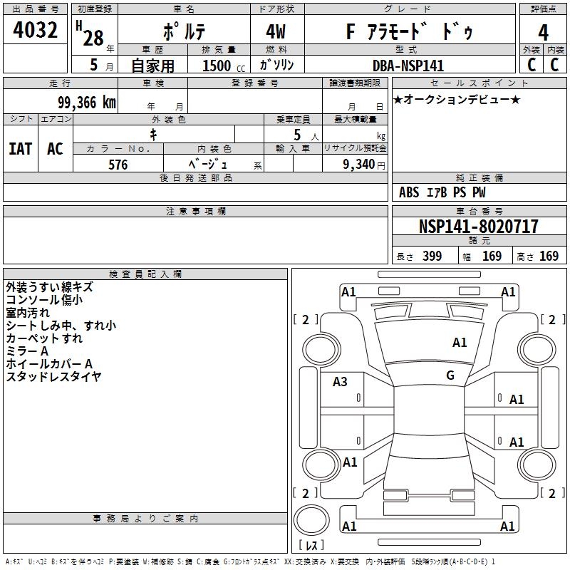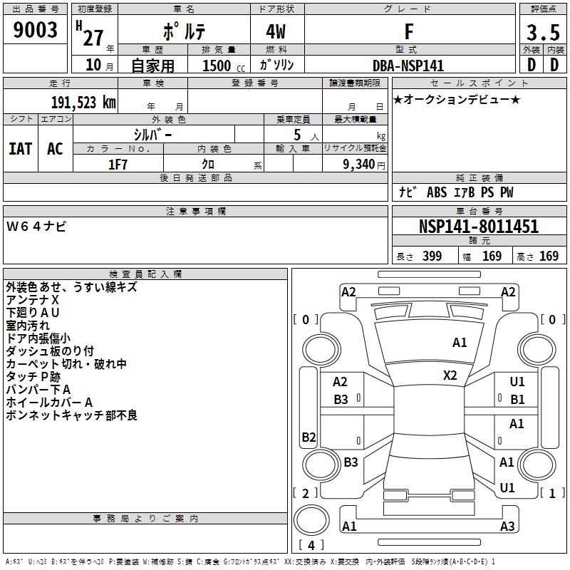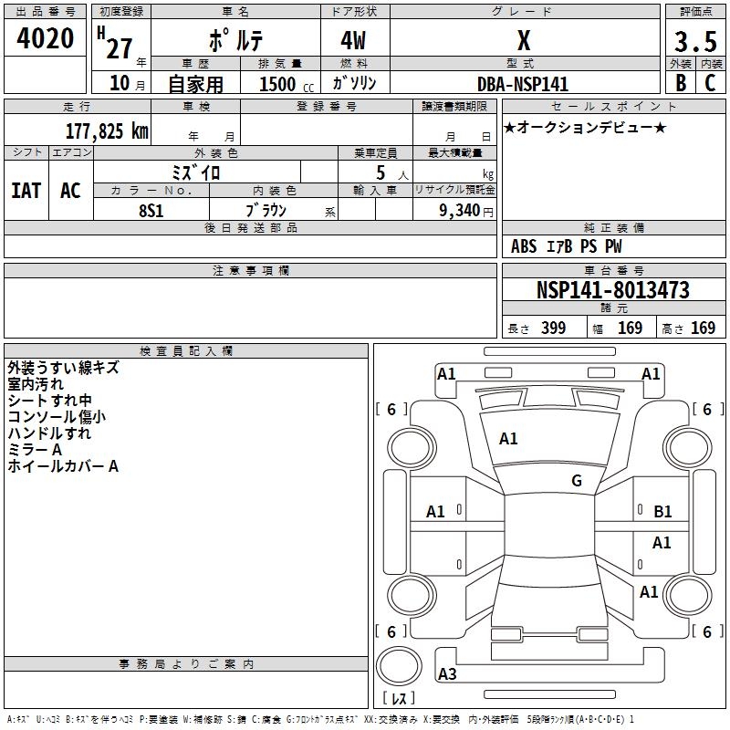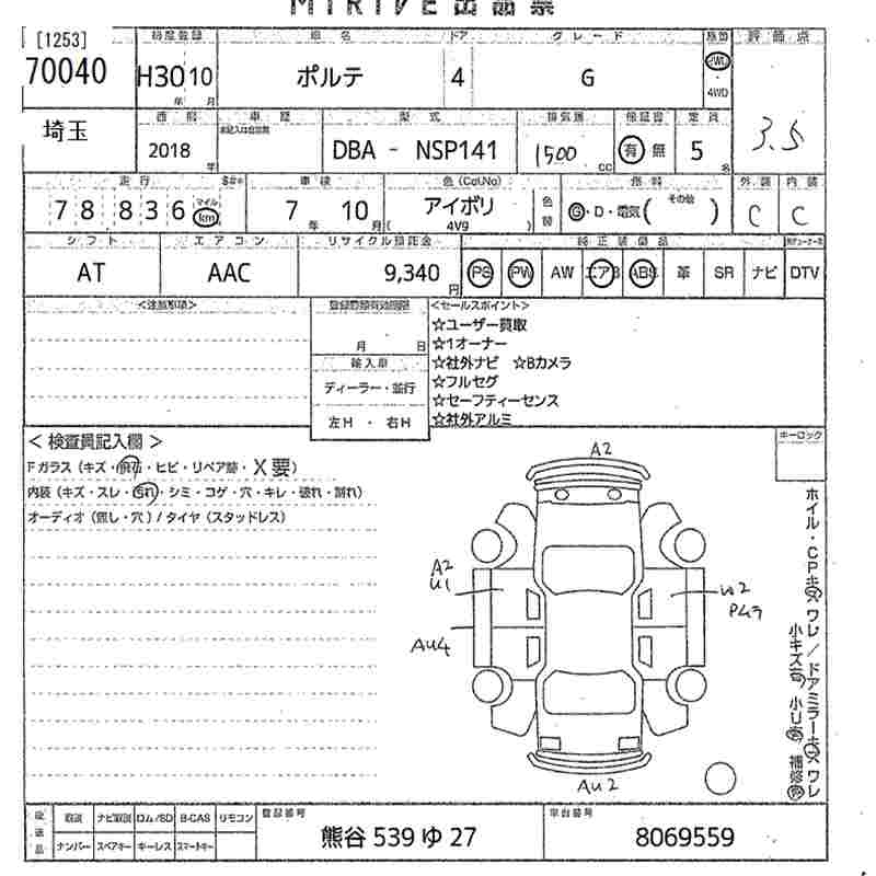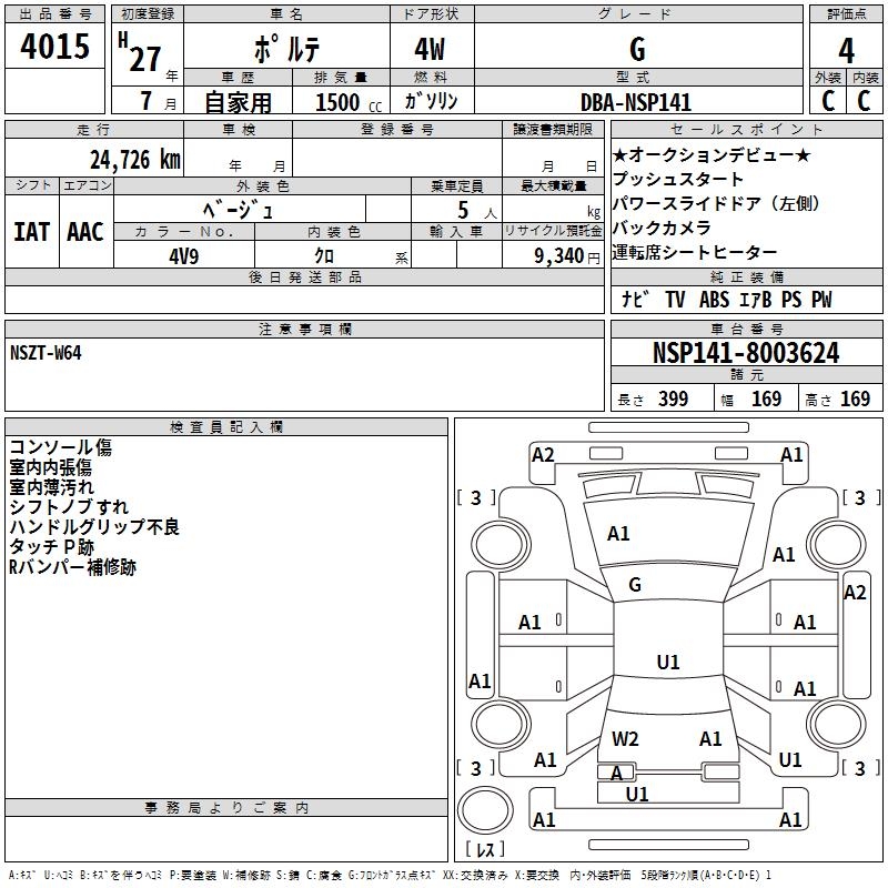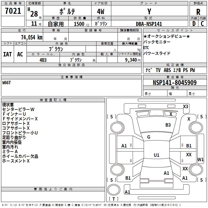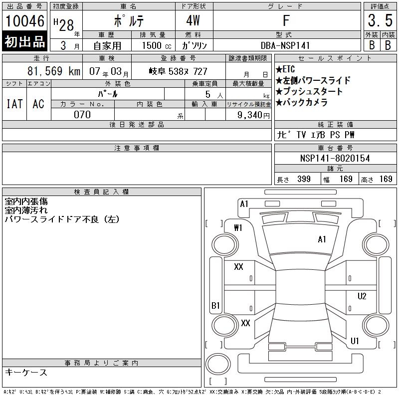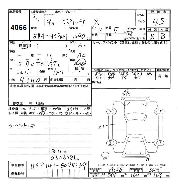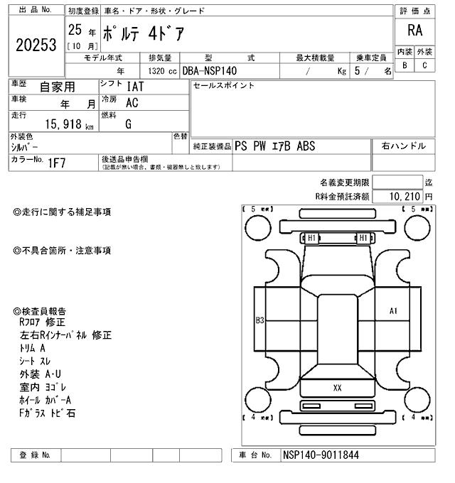 Статистика продаж TOYOTA PORTE с аукционов Японии