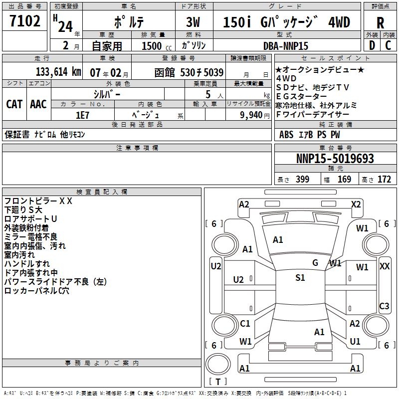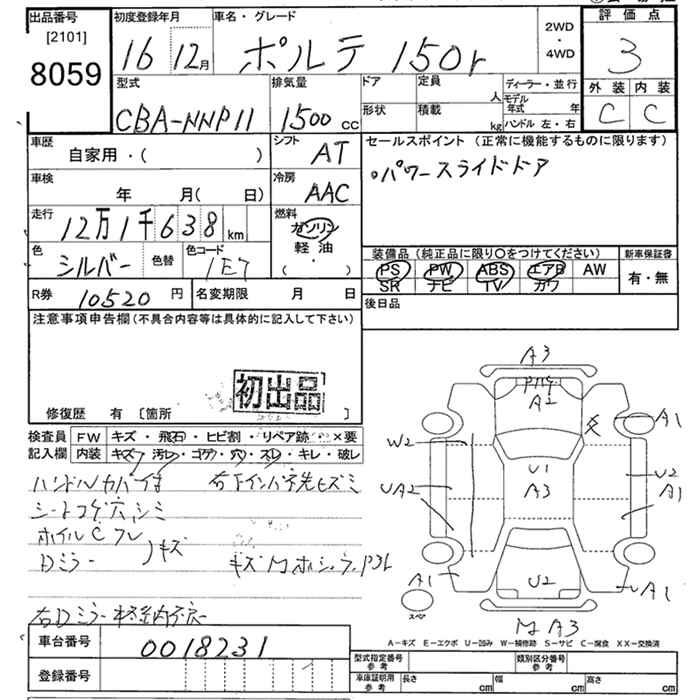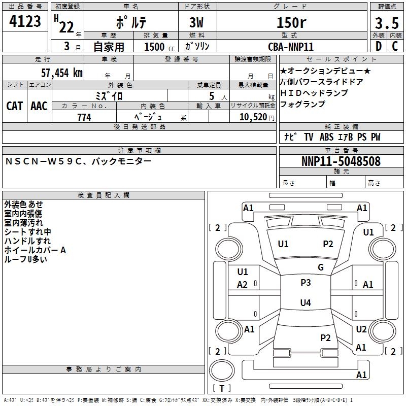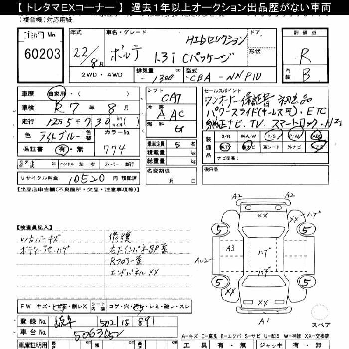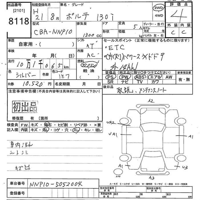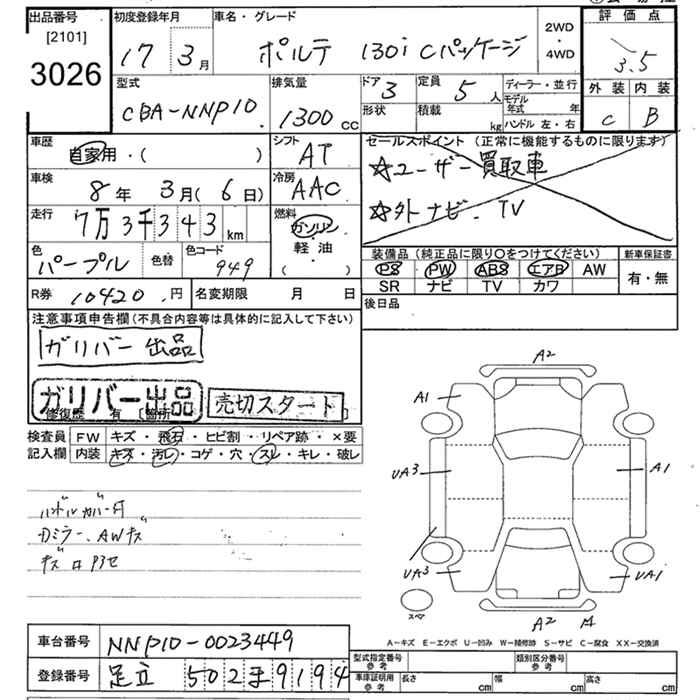 Статистика продаж TOYOTA PORTE с аукционов Японии