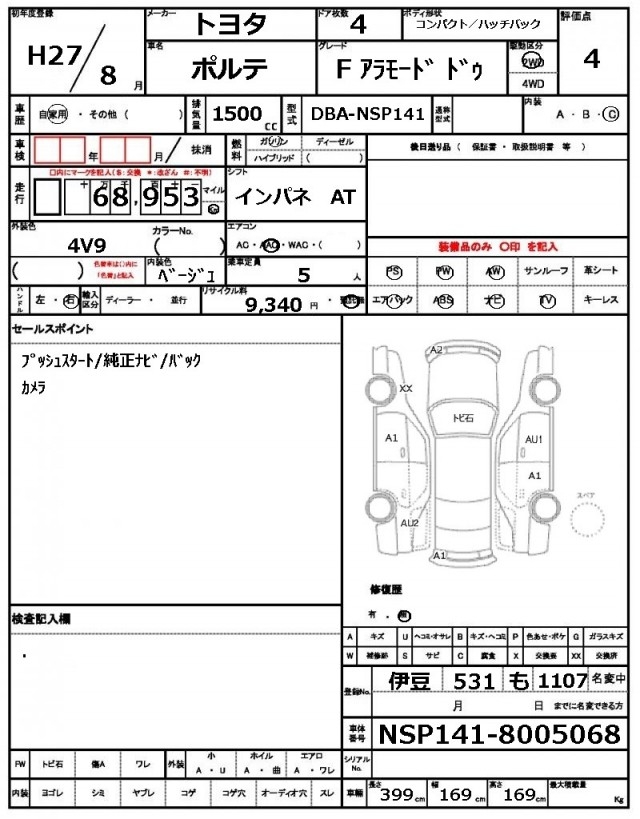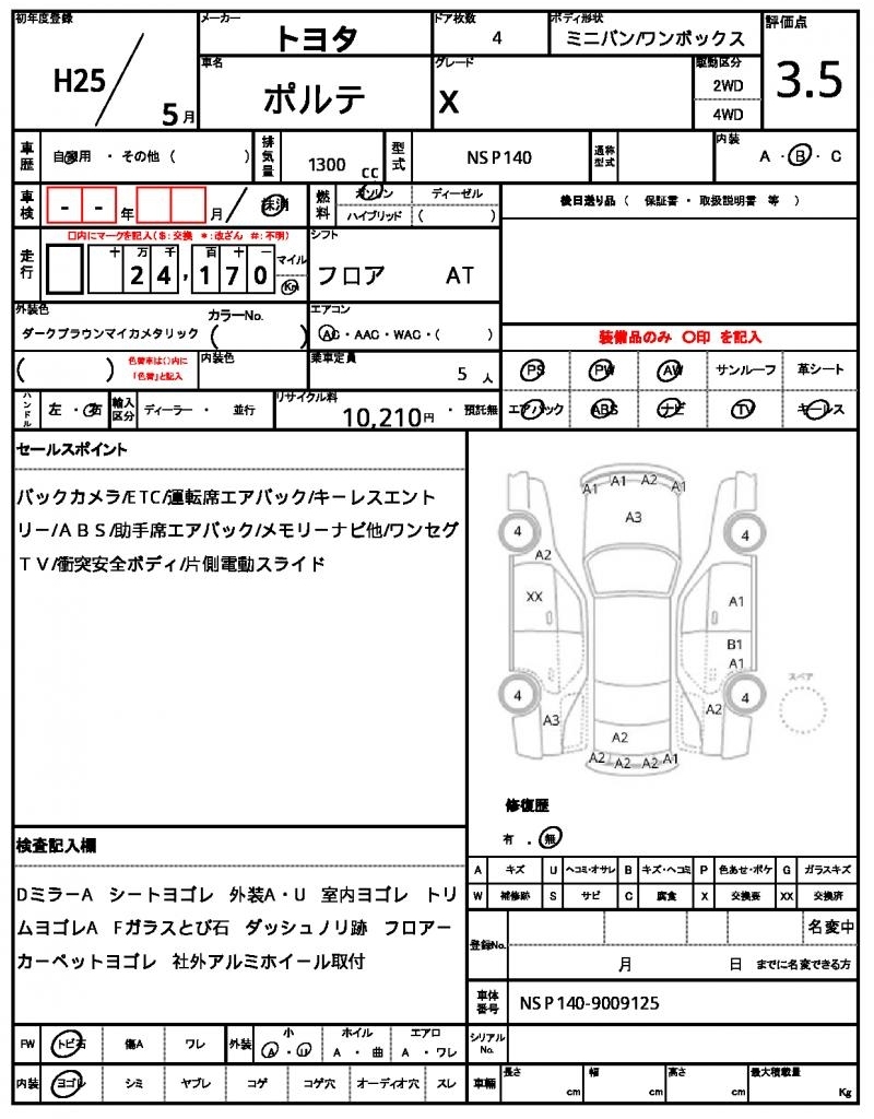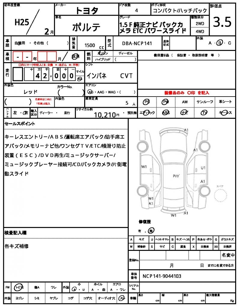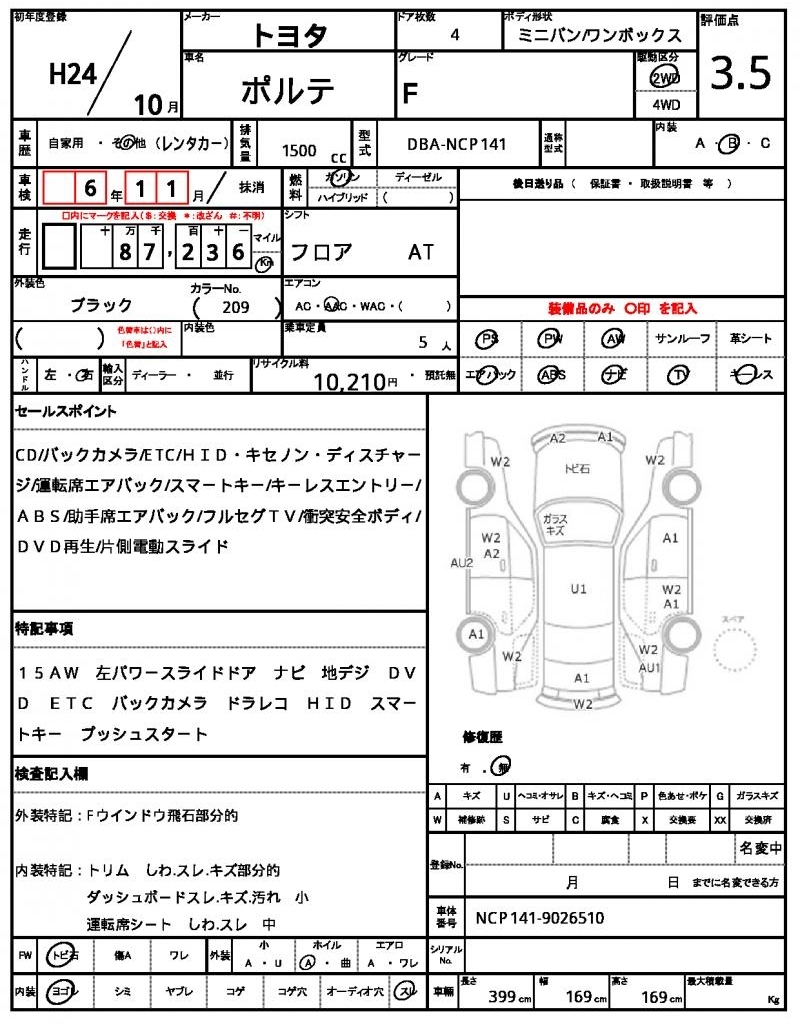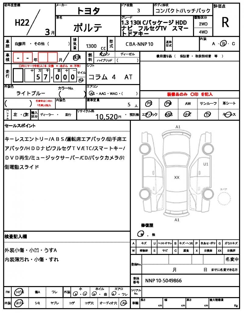Статистика продаж TOYOTA PORTE с аукционов Японии