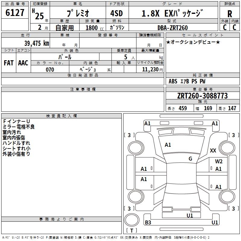 TOYOTA PREMIO 1.8X EX PACKAGE - лот 6127