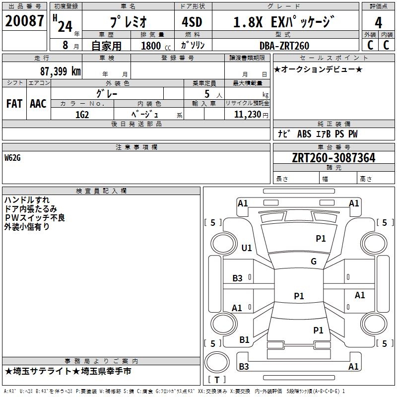 TOYOTA PREMIO 1.8X EX PACKAGE - лот 20087