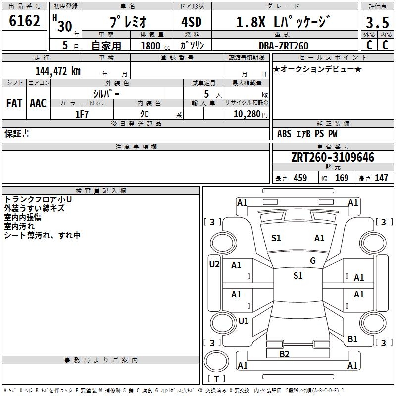 TOYOTA PREMIO 1.8X L PACKAGE - лот 6162