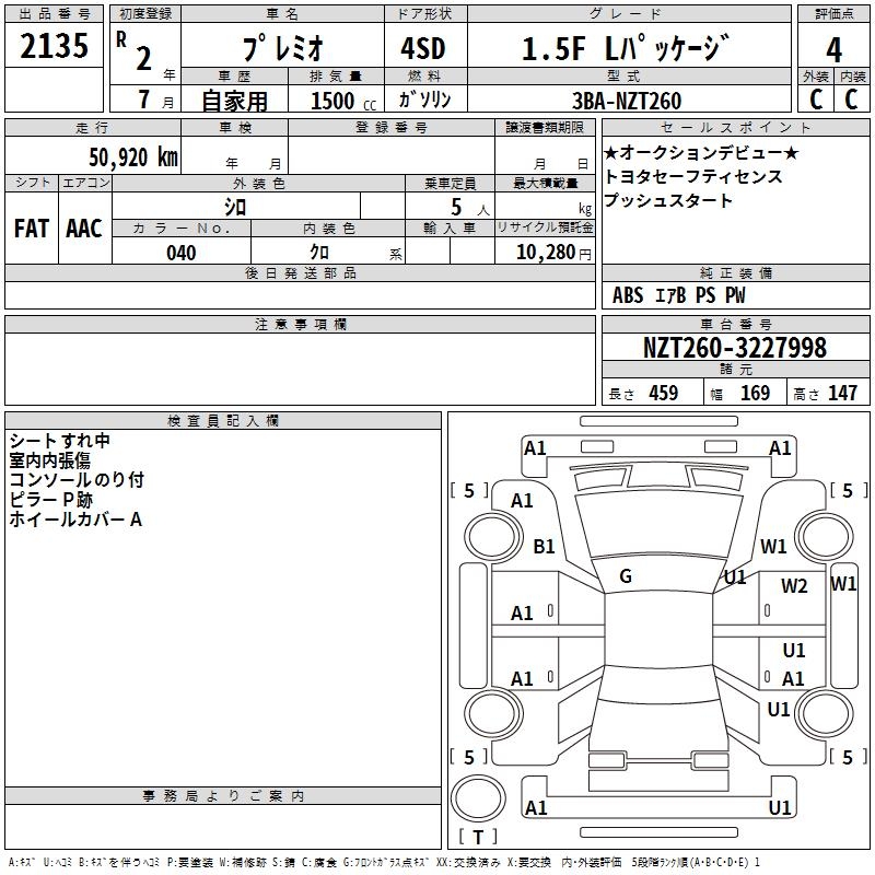 TOYOTA PREMIO 1.5F L PACKAGE - лот 2135