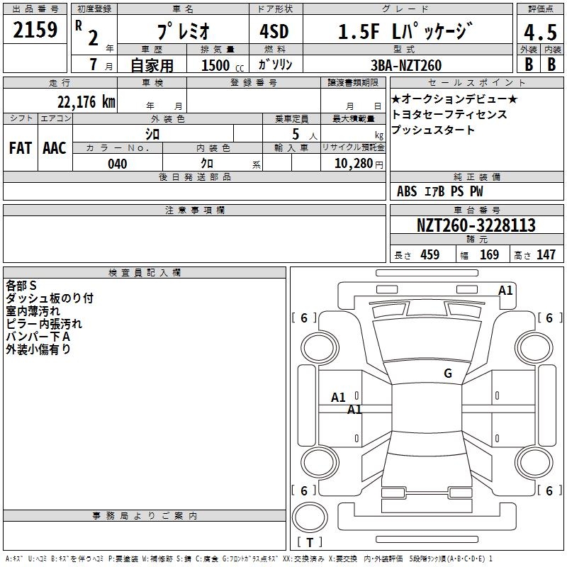 TOYOTA PREMIO 1.5F L PACKAGE - лот 2159