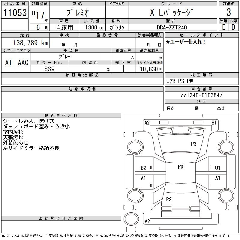 TOYOTA PREMIO X L PACKAGE - лот 11053
