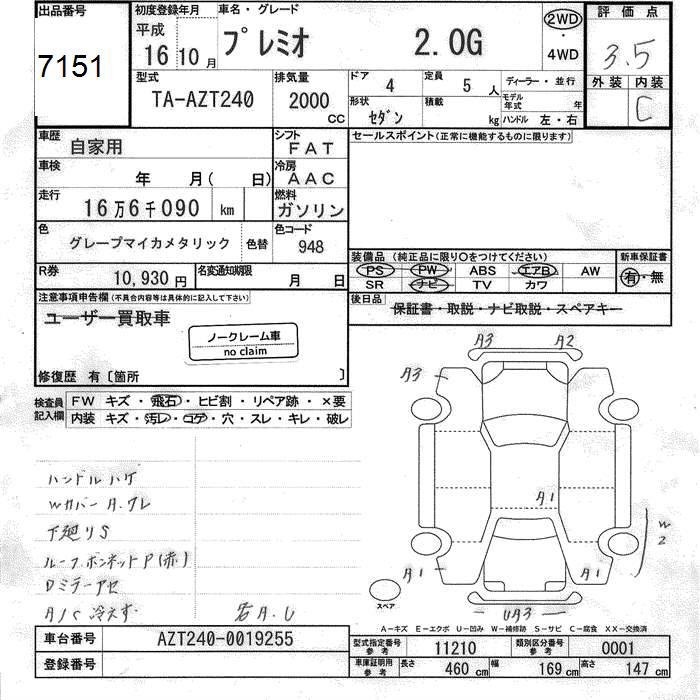 TOYOTA PREMIO G - лот 7151