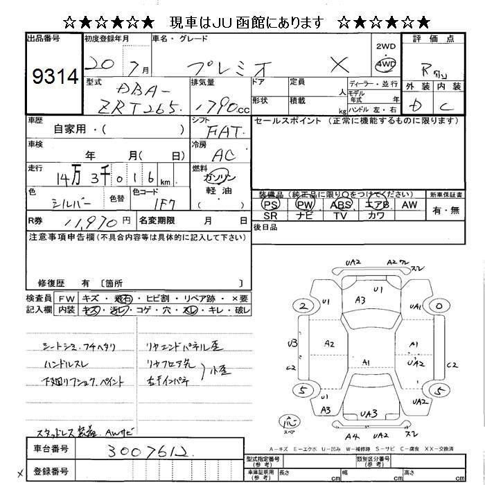 TOYOTA PREMIO 4WD 1.8X - лот 9314