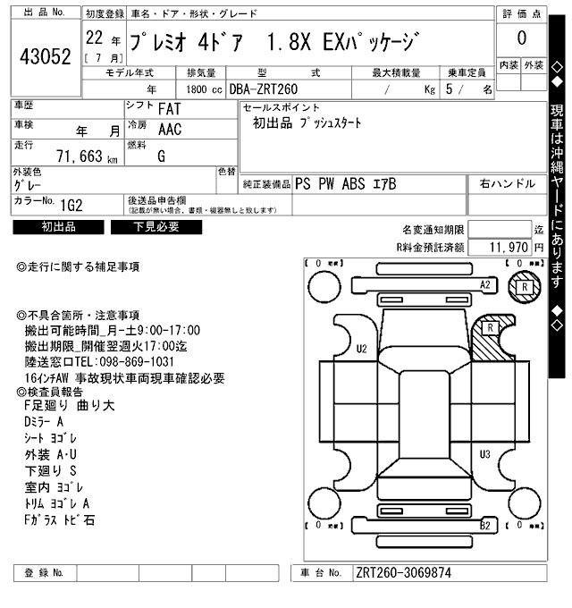 TOYOTA PREMIO 1.8X EX PACKAGE - лот 43052