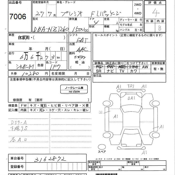 TOYOTA PREMIO F L PACKAGE - лот 7006