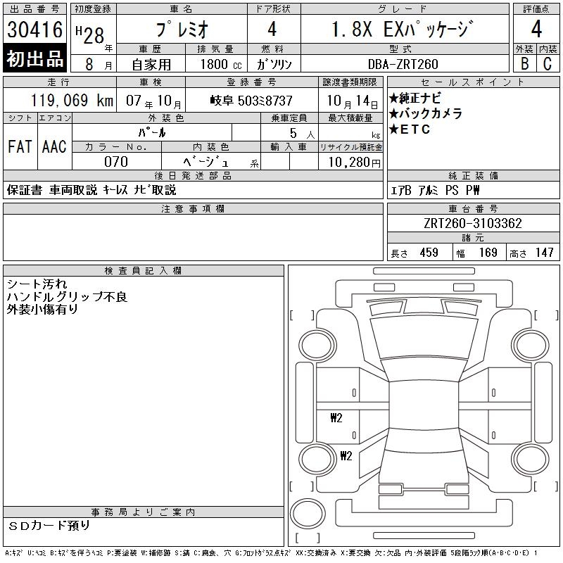 TOYOTA PREMIO 1.8X EX PACKAGE - лот 30416