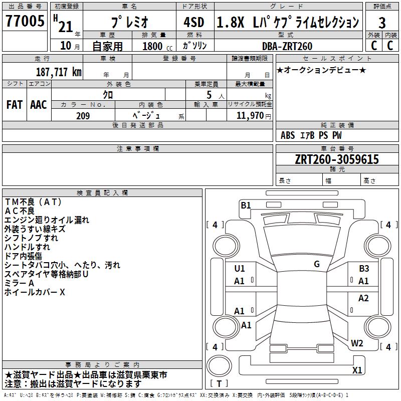 TOYOTA PREMIO 1.8X L PACK PRIME SELECTION - лот 77005
