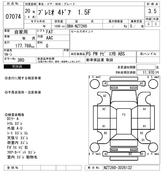 TOYOTA PREMIO 1.5F - лот 7074