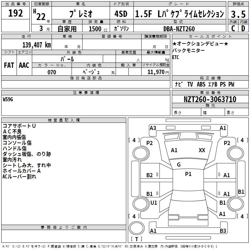 TOYOTA PREMIO 1.5F L PACK PRIME SELECTION - лот 192