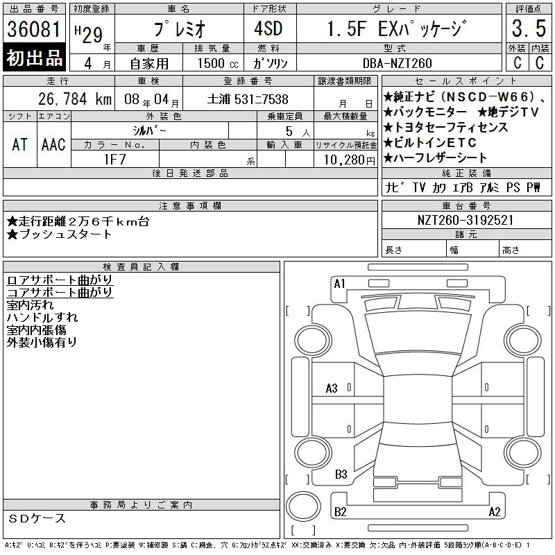 TOYOTA PREMIO 1.5F EX PACKAGE - лот 36081