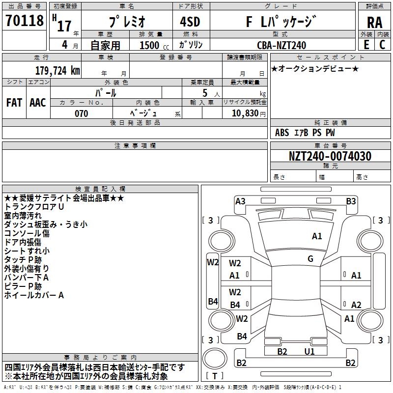 TOYOTA PREMIO F L PACKAGE - лот 70118