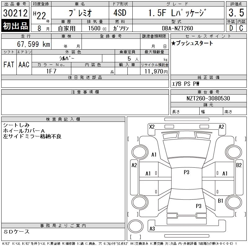 TOYOTA PREMIO 1.5F L PACKAGE - лот 30212