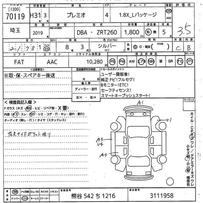 TOYOTA PREMIO 1.8X_L PACKAGE - лот 70119