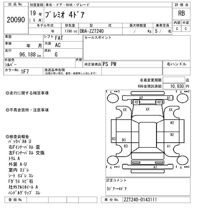 TOYOTA PREMIO - лот 20090