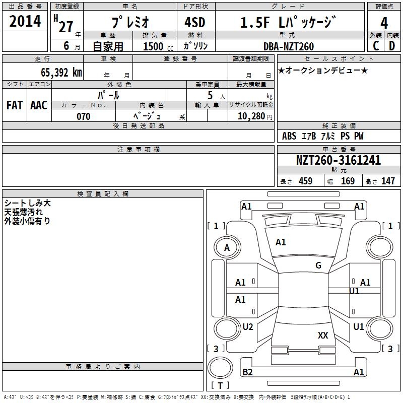 TOYOTA PREMIO 1.5F L PACKAGE - лот 2014
