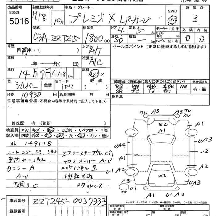 TOYOTA PREMIO 4WD X L PACKAGE - лот 5016