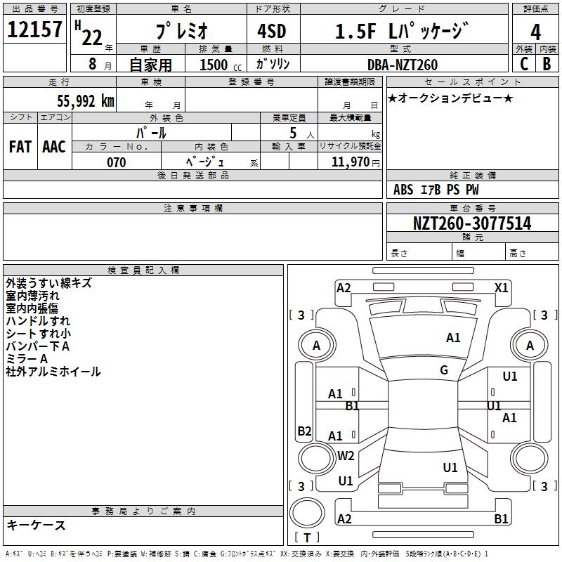 TOYOTA PREMIO 1.5F L PACKAGE - лот 12157