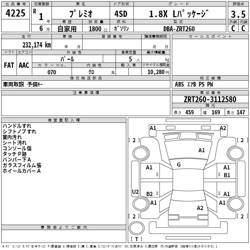 TOYOTA PREMIO 1.8X L PACKAGE - лот 4225