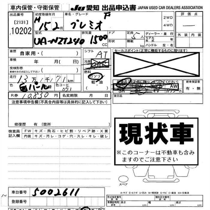 TOYOTA PREMIO F - лот 10202