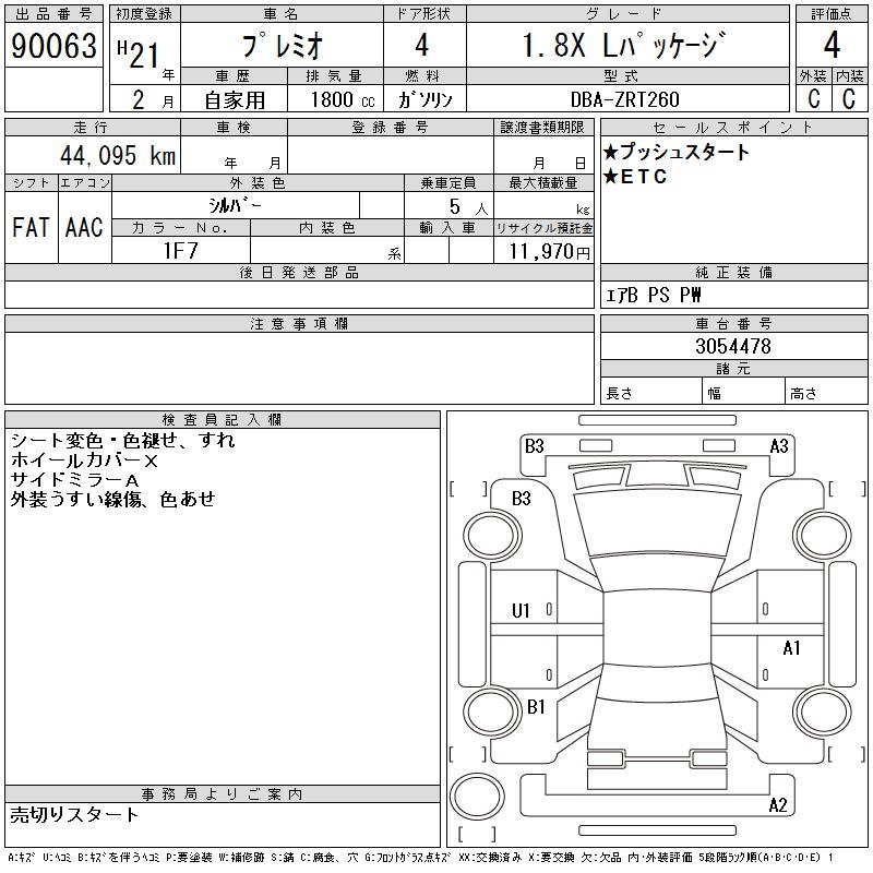 TOYOTA PREMIO 1.8X L PACKAGE - лот 90063