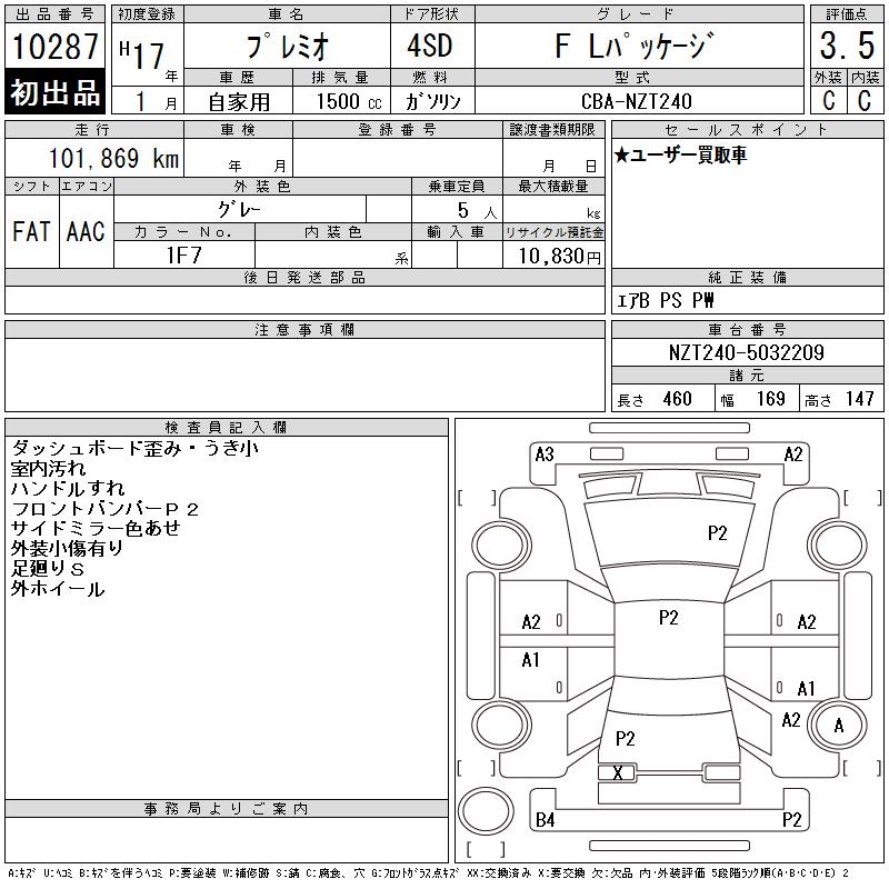 TOYOTA PREMIO F L PACKAGE - лот 10287