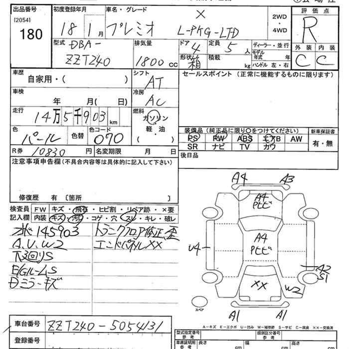 Все аукционы TOYOTA PREMIO