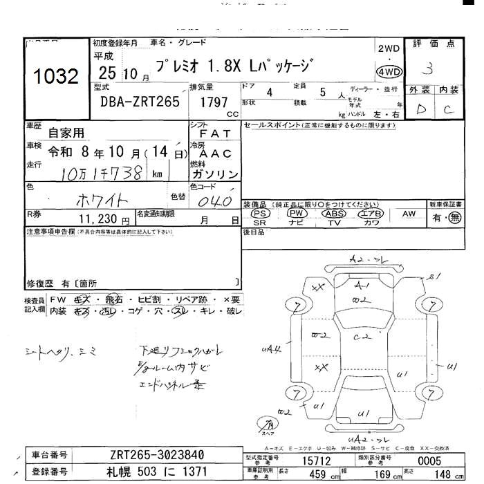 TOYOTA PREMIO 4WD 1.8X L PACKAGE - лот 1032