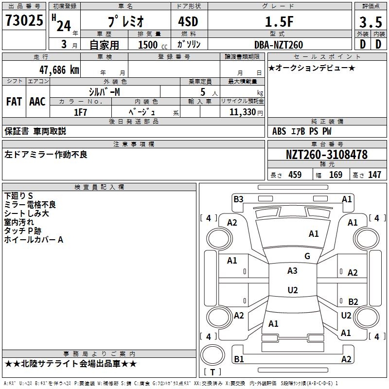 TOYOTA PREMIO 1.5F L PACK P GREEN SELECTION - лот 73025