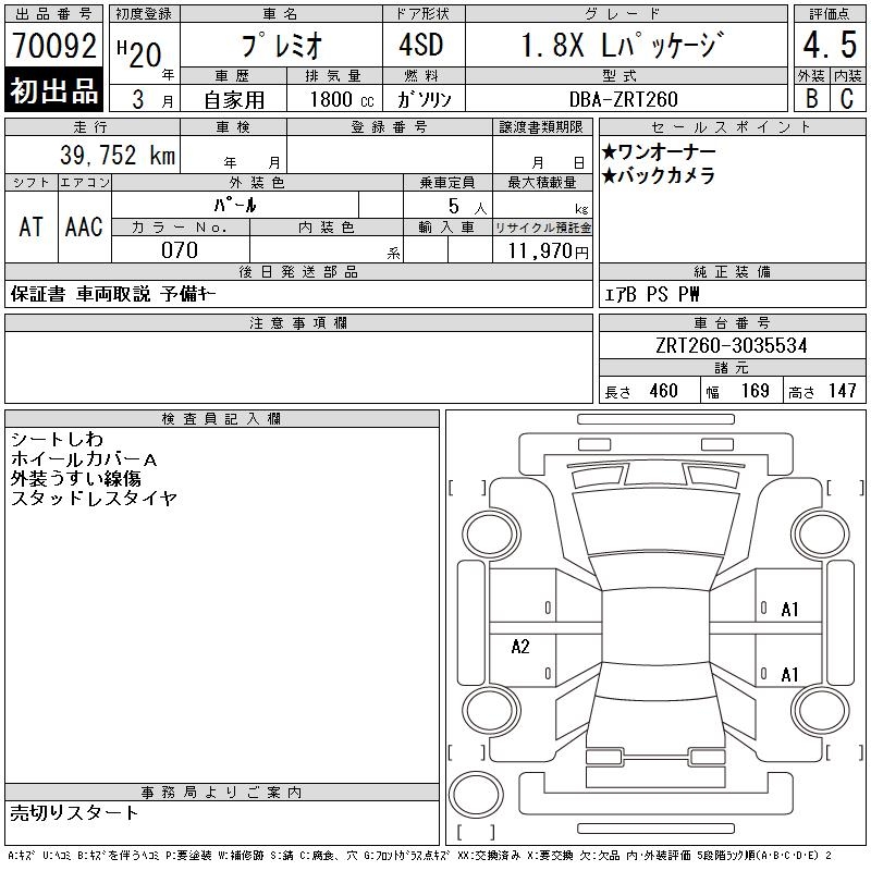 TOYOTA PREMIO 1.8X L PACKAGE - лот 70092