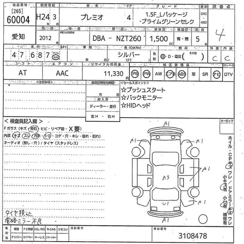 TOYOTA PREMIO 1.5F_L PACKAGE * PRIME GREEN SELECT - лот 60004