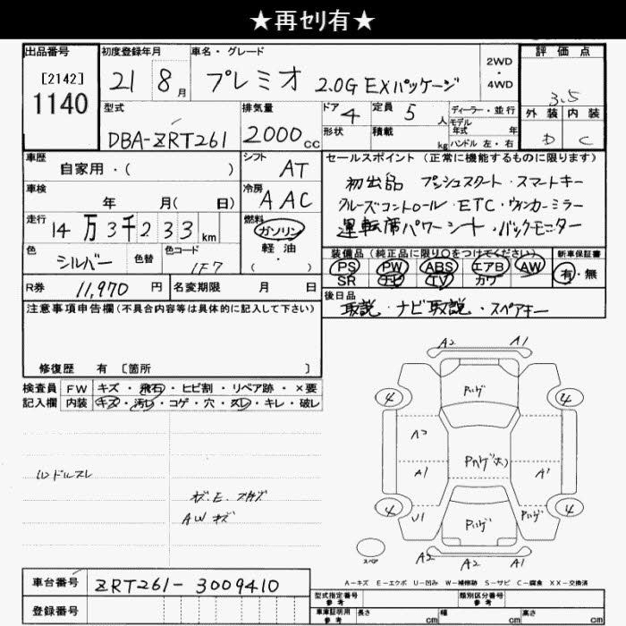 TOYOTA PREMIO - лот 1140