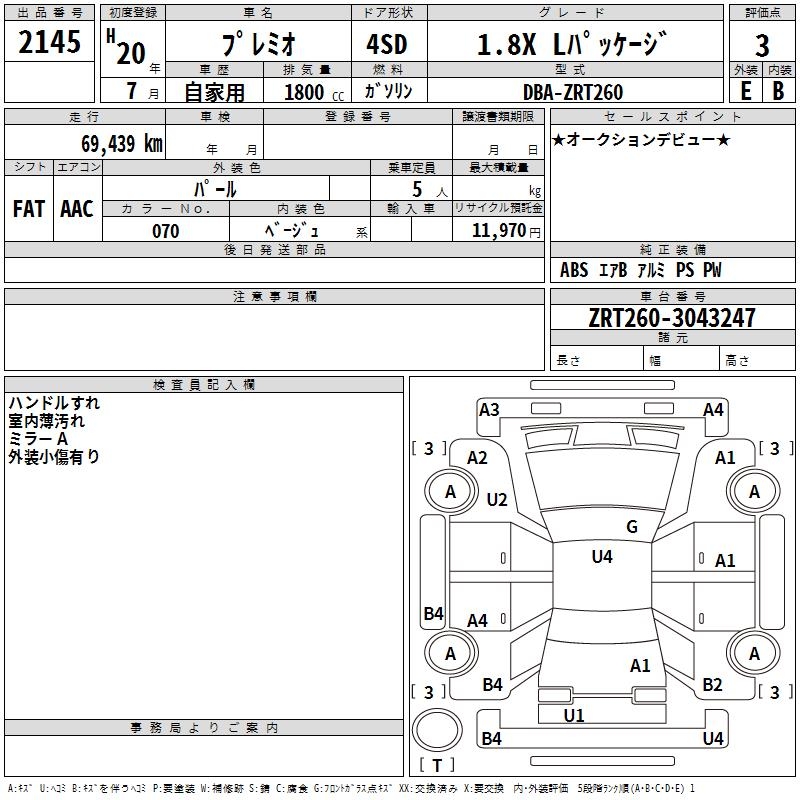 TOYOTA PREMIO - лот 2145