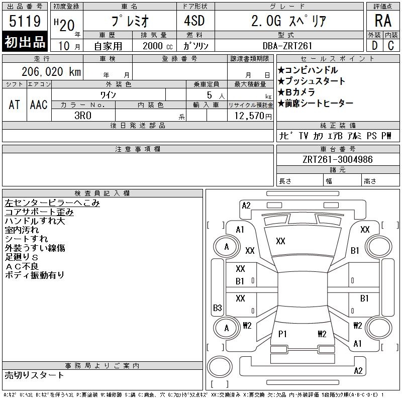 TOYOTA PREMIO - лот 5119